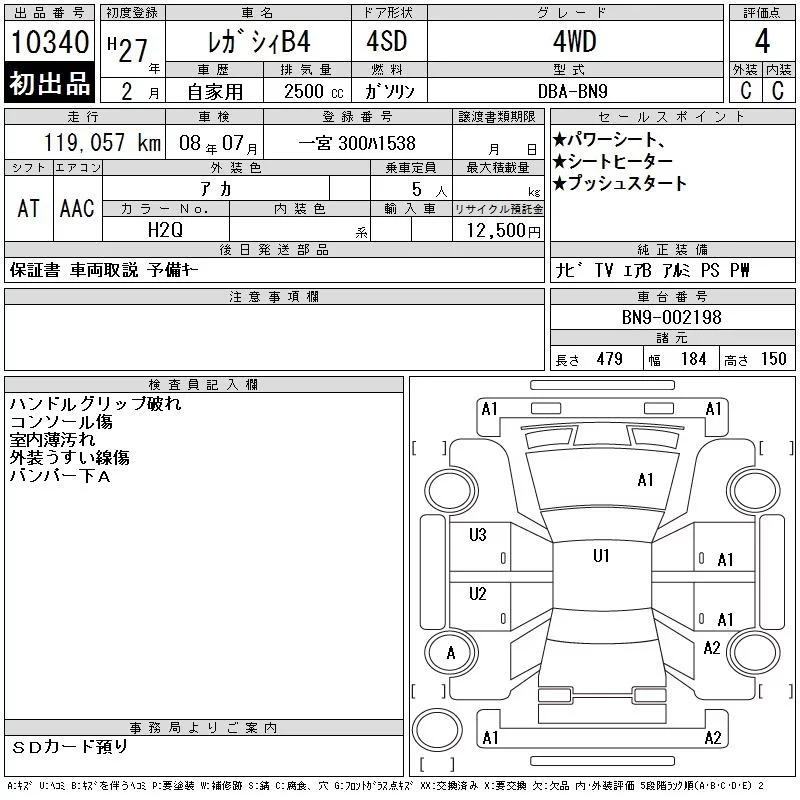 Subaru LEGACY B4 с аукциона Японии CAA Chubu лот № 10340