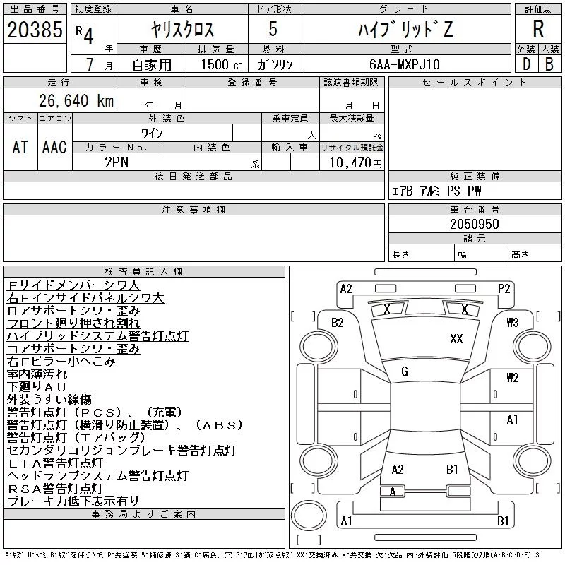 Toyota YARIS CROSS с аукциона Японии CAA Chubu лот № 20385