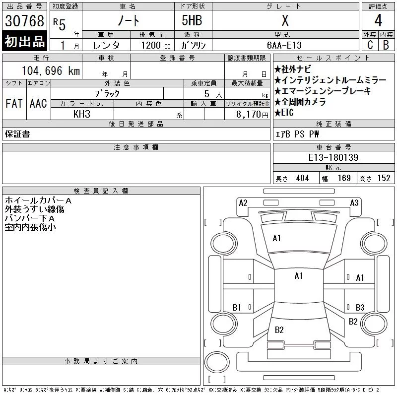 Nissan NOTE с аукциона Японии CAA Chubu лот № 30768