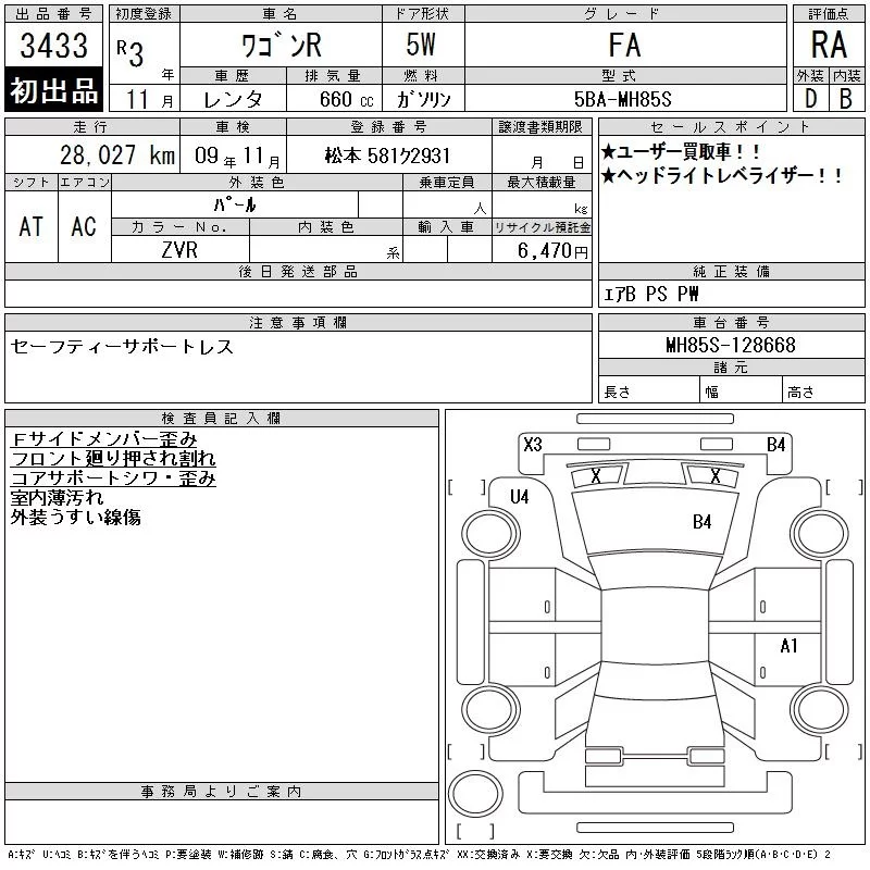 Suzuki WAGON R с аукциона Японии CAA Chubu лот № 3433