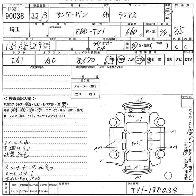 Subaru SAMBAR с аукциона Японии MIRIVE Saitama лот № 90038