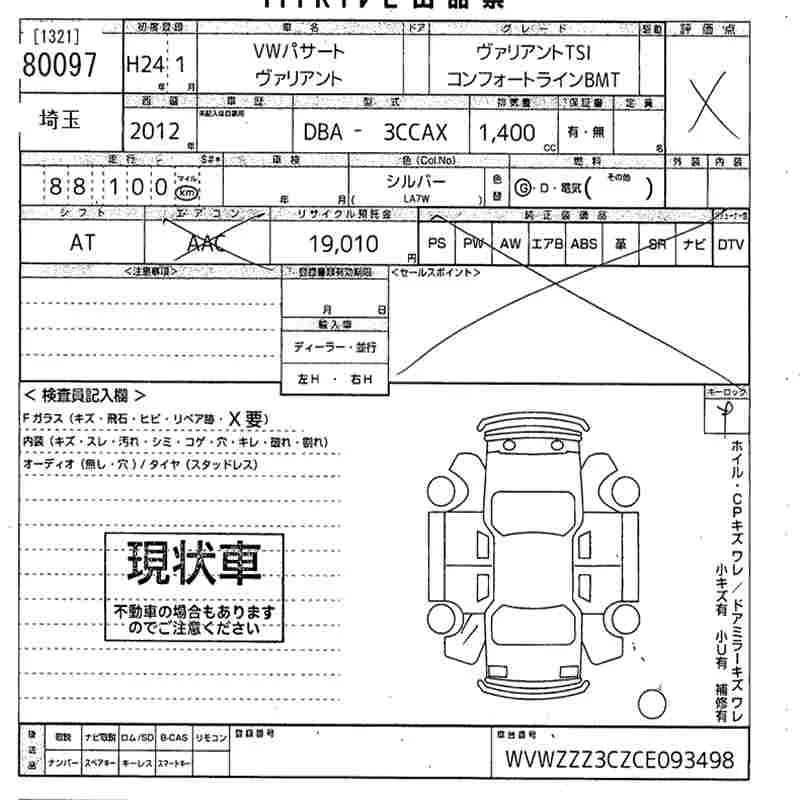 Volkswagen PASSAT VARIANT с аукциона Японии MIRIVE Saitama лот № 80097