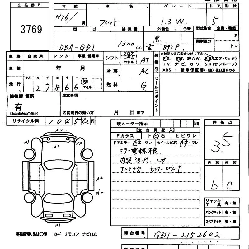 Honda FIT с аукциона Японии KCAA Minami Kyushu лот № 3769