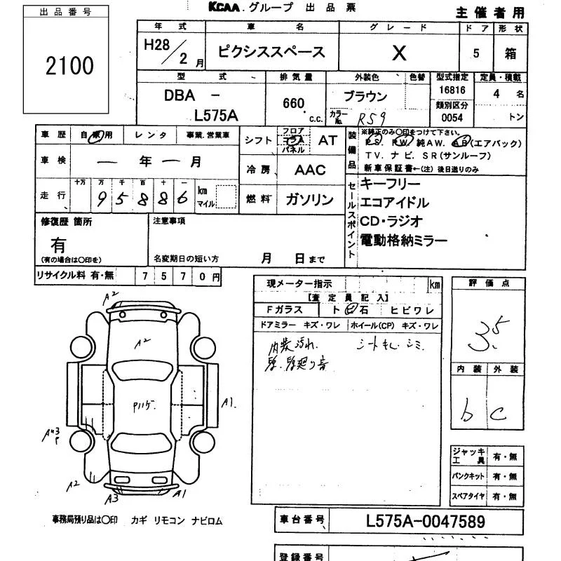 Toyota PIXIS SPACE с аукциона Японии KCAA Minami Kyushu лот № 2100