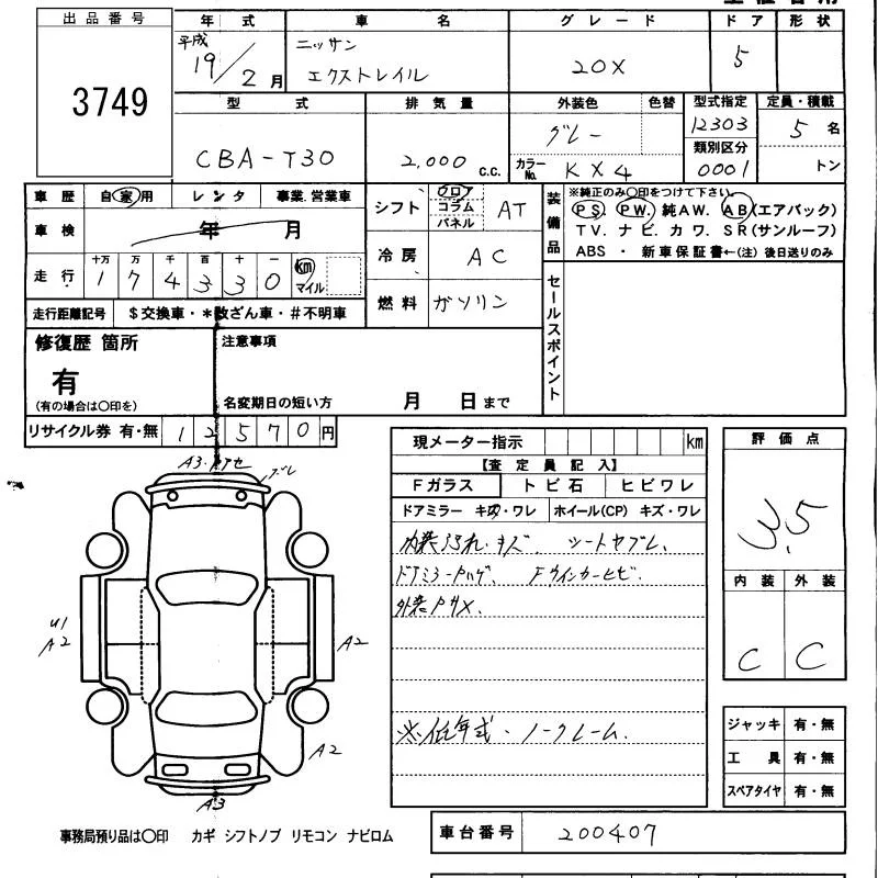Nissan X-TRAIL с аукциона Японии KCAA Minami Kyushu лот № 3749