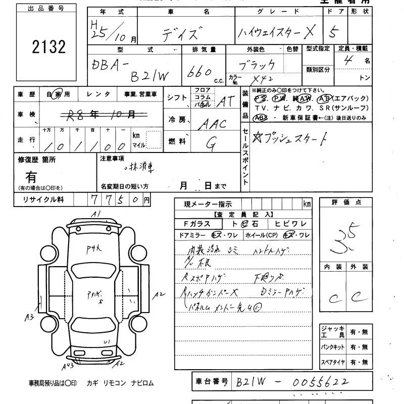 Nissan DAYZ с аукциона Японии KCAA Minami Kyushu лот № 2132