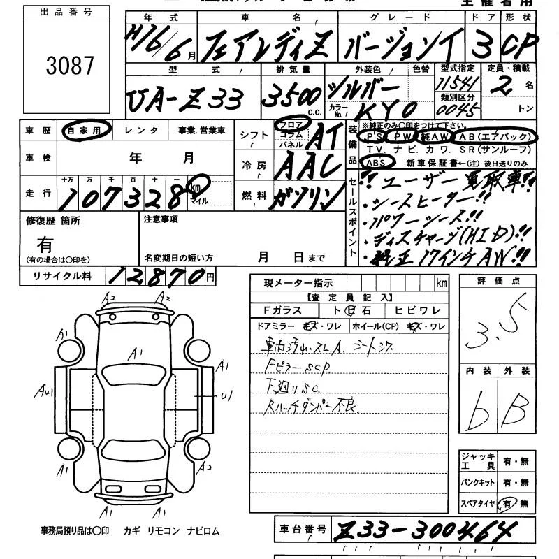 Nissan FAIRLADYZ с аукциона Японии KCAA Minami Kyushu лот № 3087