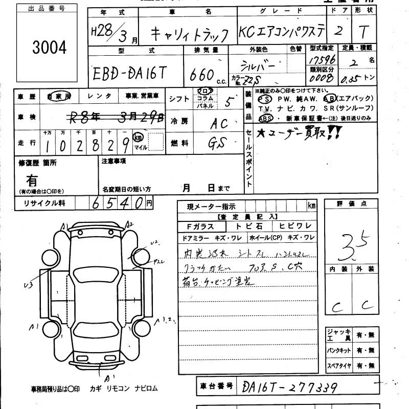 Suzuki CARRY TRUCK с аукциона Японии KCAA Minami Kyushu лот № 3004