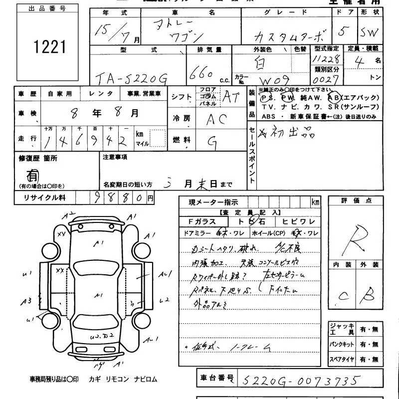 Daihatsu Atrai Wagon с аукциона Японии KCAA Minami Kyushu лот № 1221