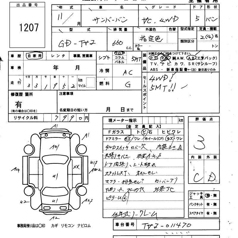 Subaru SAMBAR с аукциона Японии KCAA Minami Kyushu лот № 1207