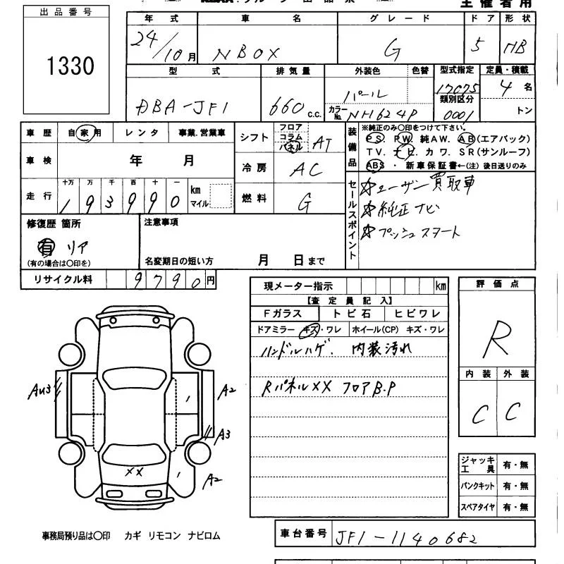 Honda N BOX с аукциона Японии KCAA Minami Kyushu лот № 1330