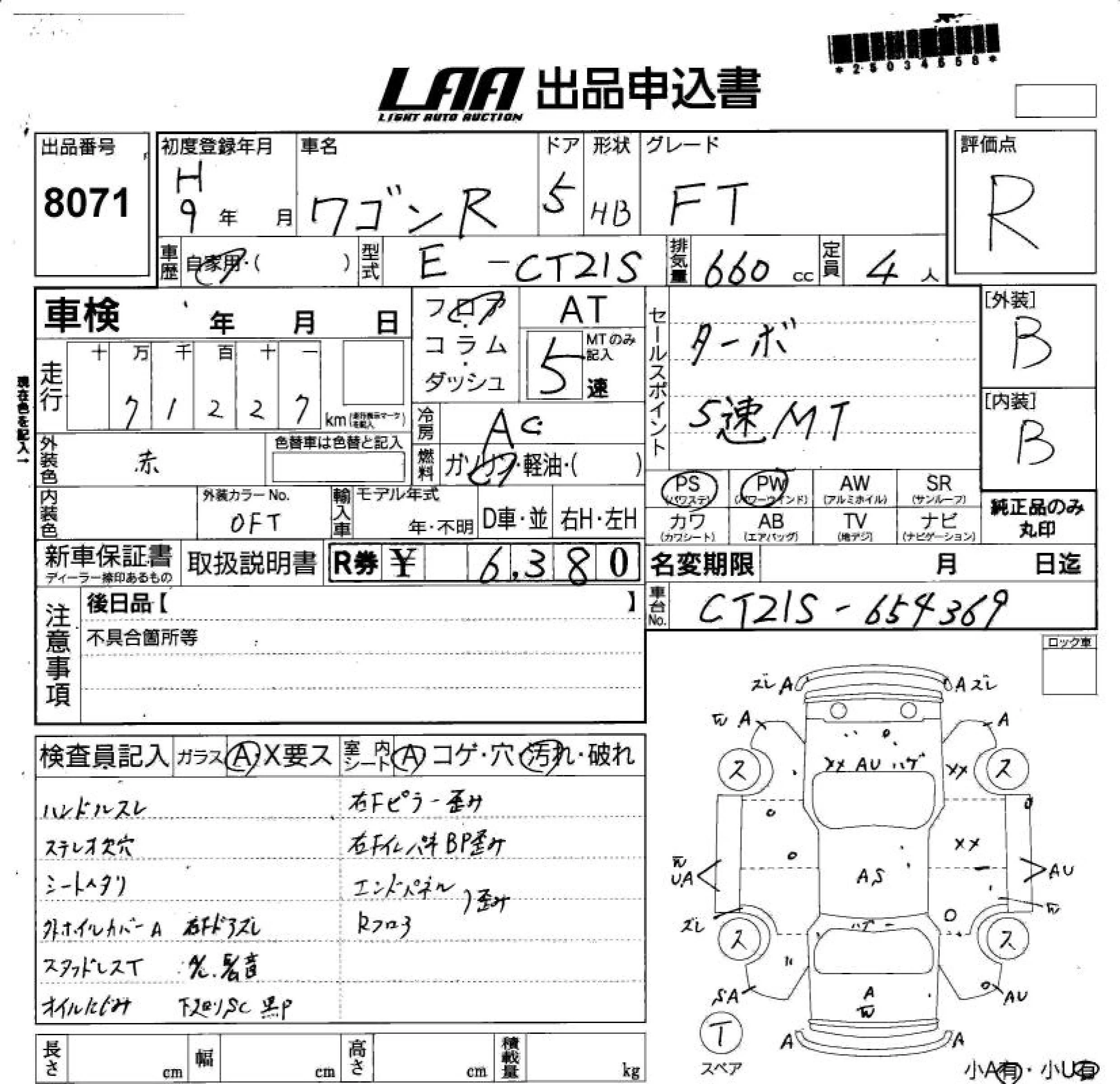 Suzuki WAGON R с аукциона Японии LAA Shikoku лот № 8071