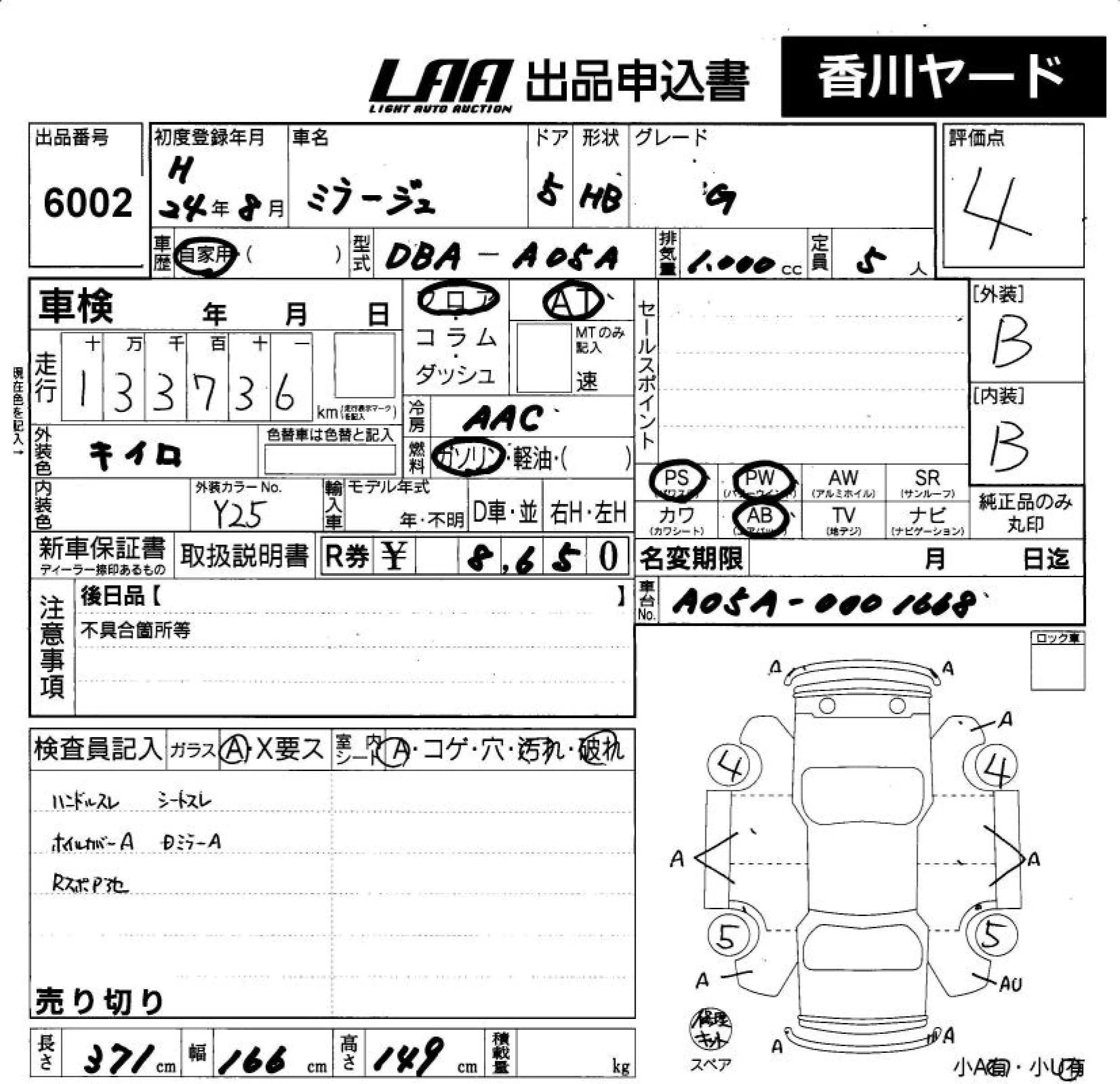 Mitsubishi MIRAGE с аукциона Японии LAA Shikoku лот № 6002