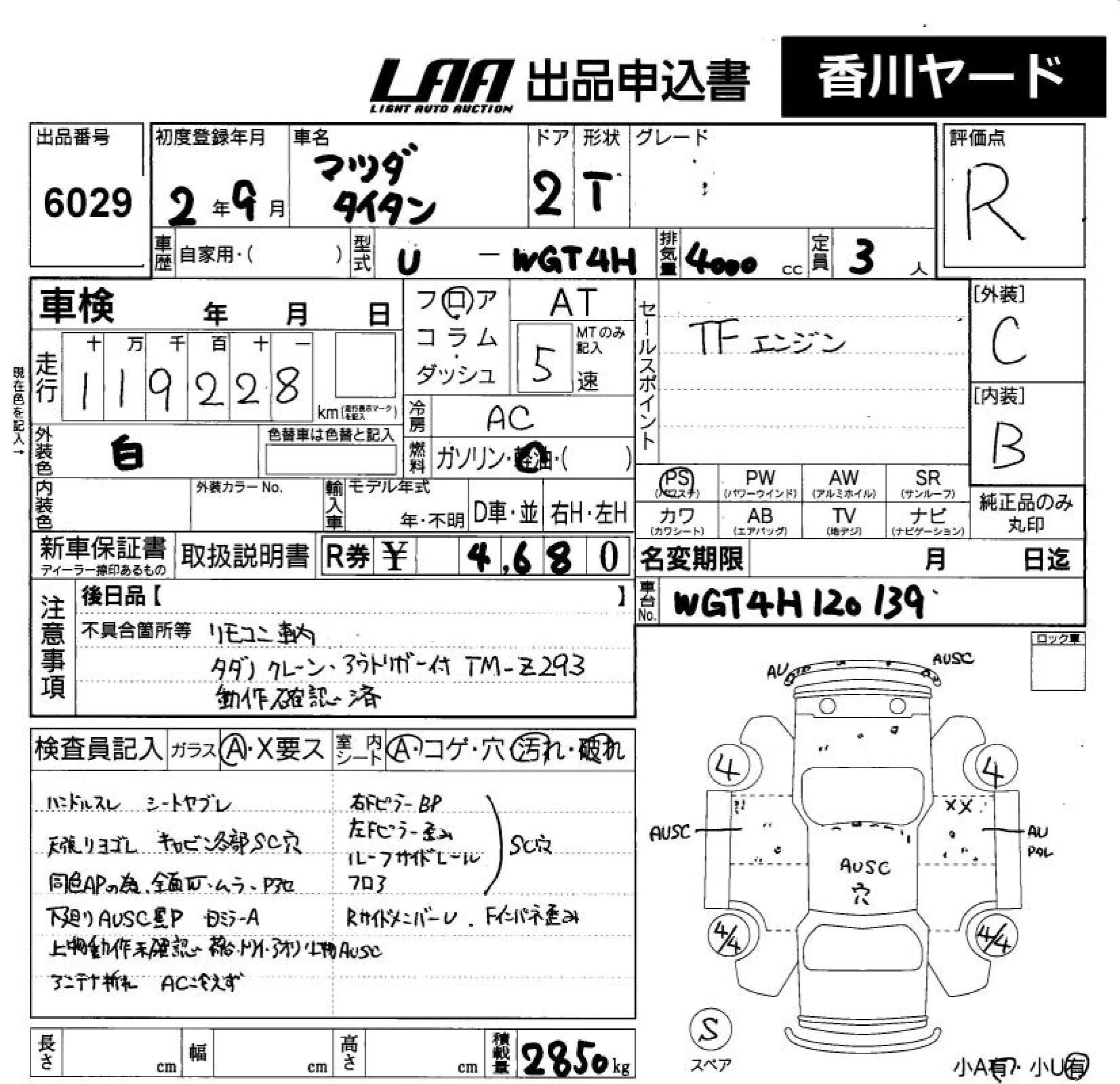 Mazda TITAN с аукциона Японии LAA Shikoku лот № 6029