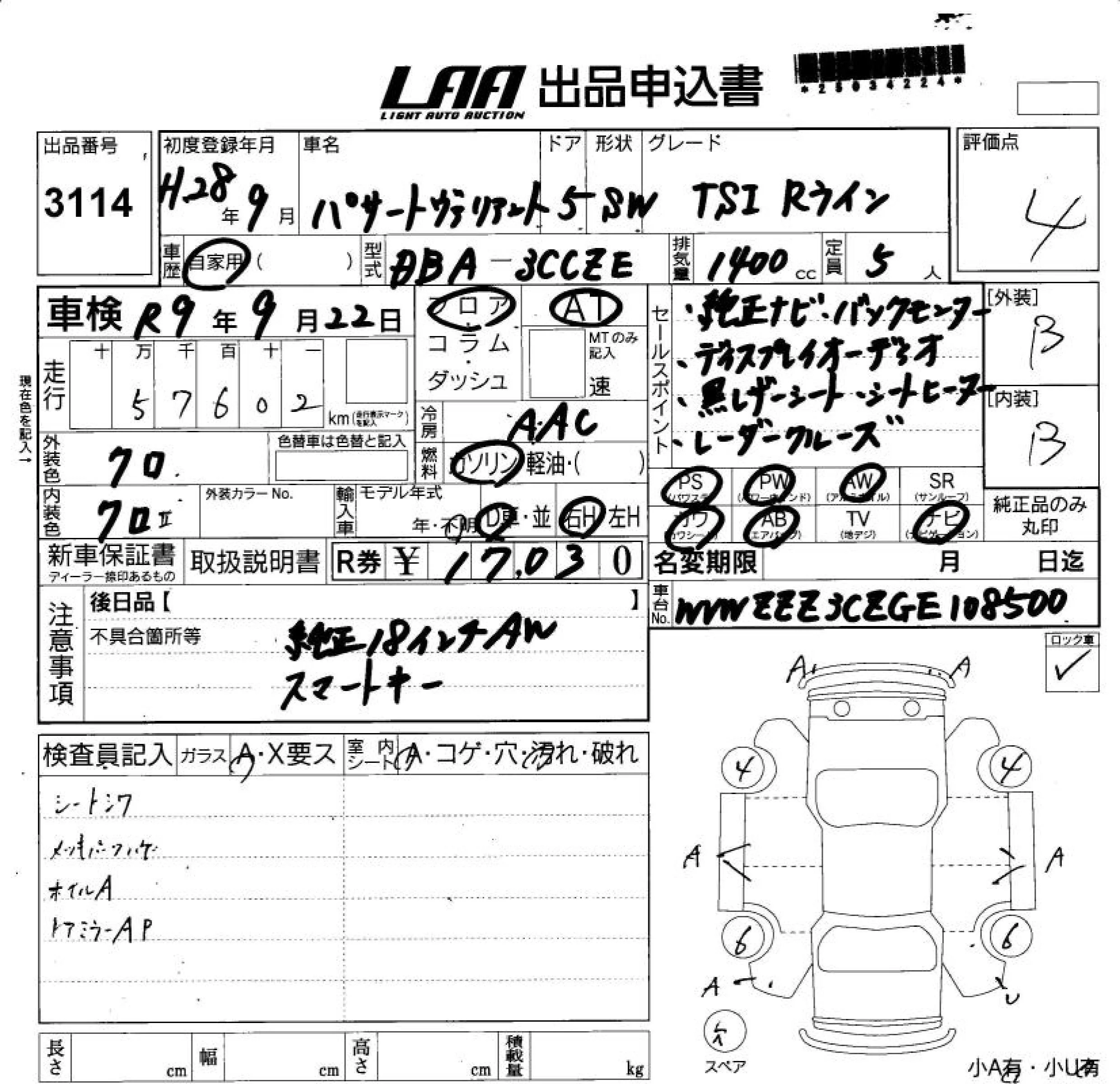 Volkswagen PASSAT VARIANT с аукциона Японии LAA Shikoku лот № 3114