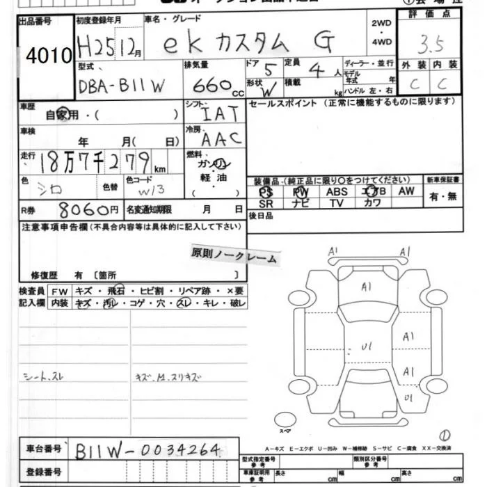 Mitsubishi EK CUSTOM с аукциона Японии JU Ibaraki лот № 4010