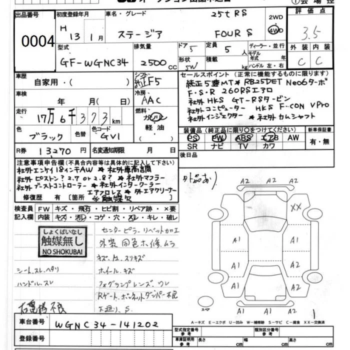 Nissan STAGEA с аукциона Японии JU Ibaraki лот № 4