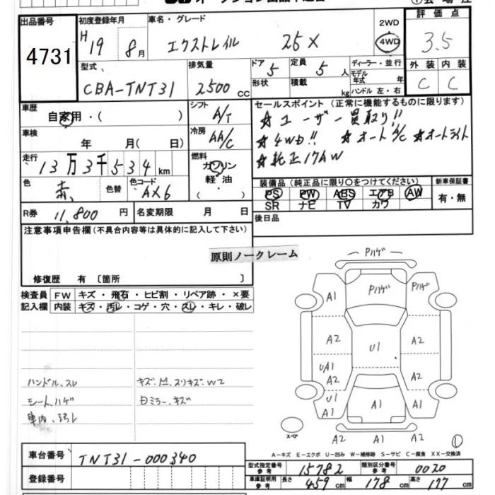 Nissan X-TRAIL с аукциона Японии JU Ibaraki лот № 4731