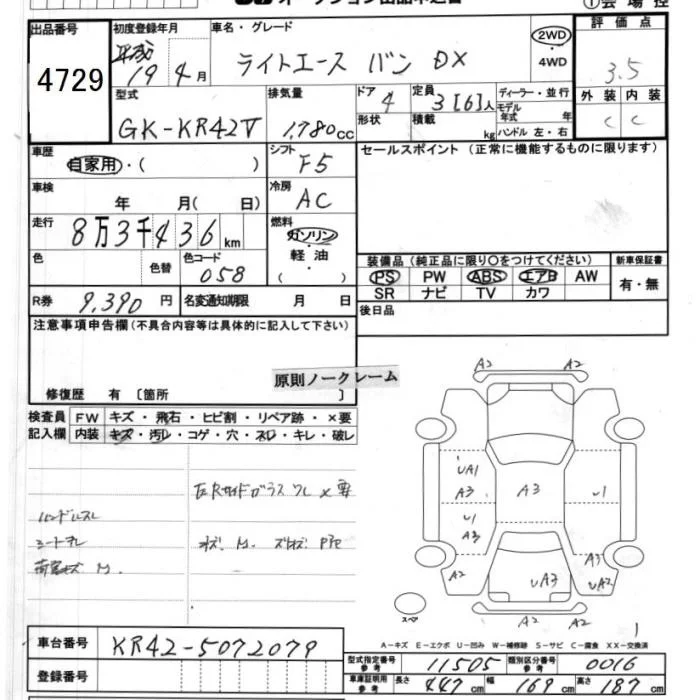 Toyota LITE ACE VAN с аукциона Японии JU Ibaraki лот № 4729