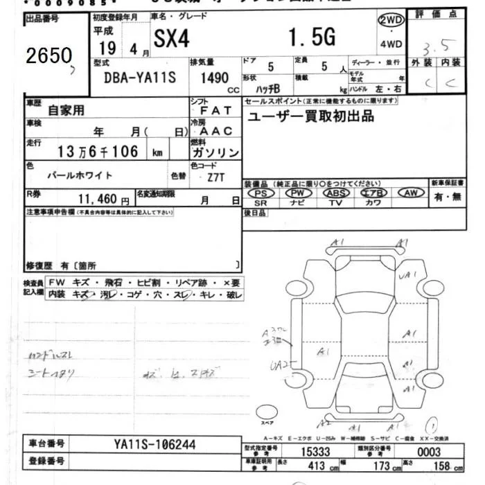 Suzuki SX-4 с аукциона Японии JU Ibaraki лот № 2650