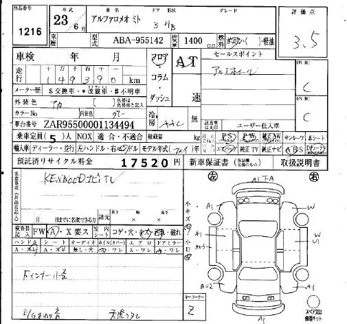 Alfa Romeo MiTo с аукциона Японии IAA Osaka лот № 1216