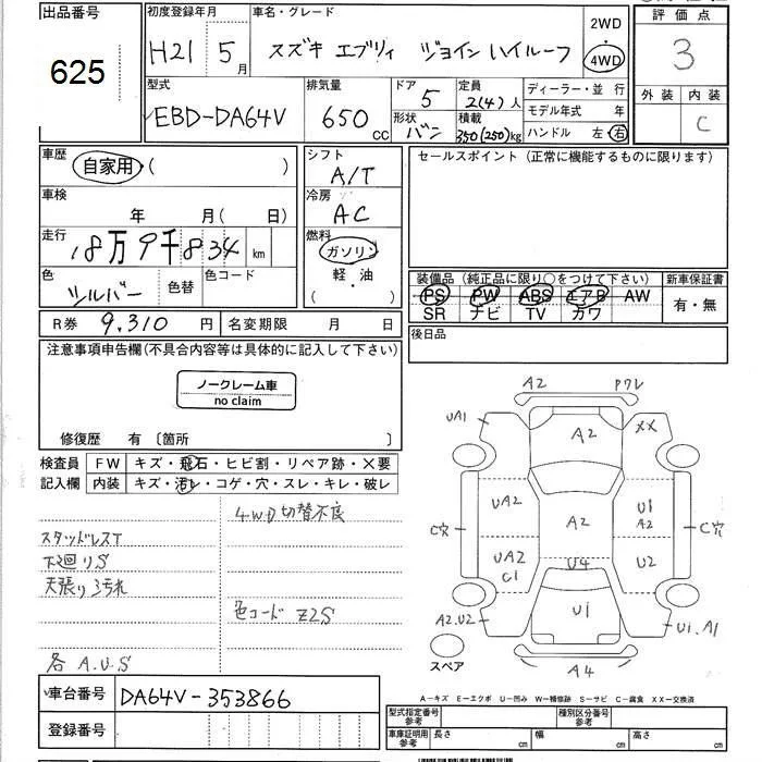 Suzuki EVERY с аукциона Японии JU Ishikawa лот № 625