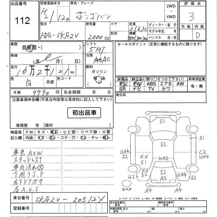 Mazda BONGO VAN с аукциона Японии JU Ishikawa лот № 112