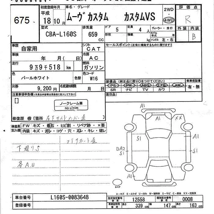 Daihatsu MOVE с аукциона Японии JU Ishikawa лот № 675