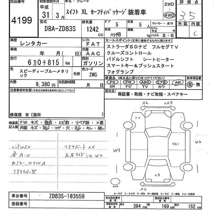 Suzuki SWIFT с аукциона Японии JU Ishikawa лот № 4199