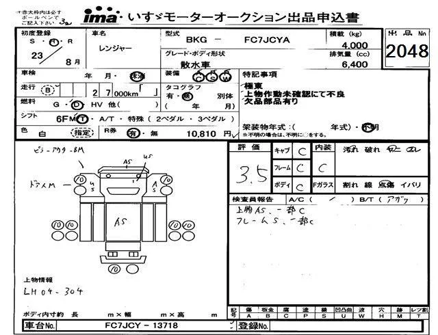 Hino RANGER с аукциона Японии Isuzu Tokyo лот № 2048