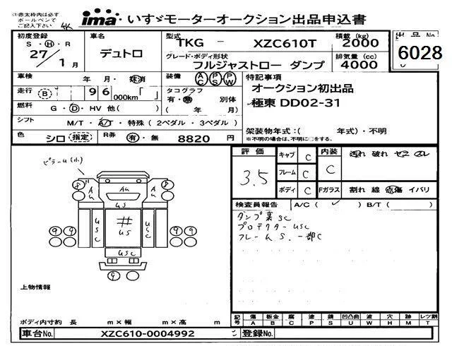 Hino DUTRO с аукциона Японии Isuzu Tokyo лот № 6028