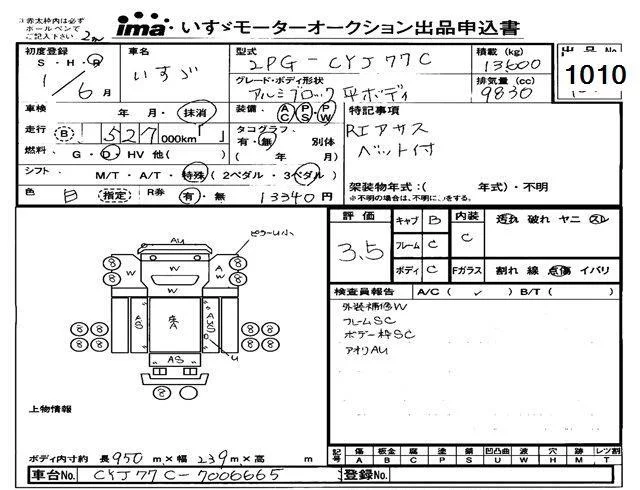 Isuzu TRUCK с аукциона Японии Isuzu Tokyo лот № 1010