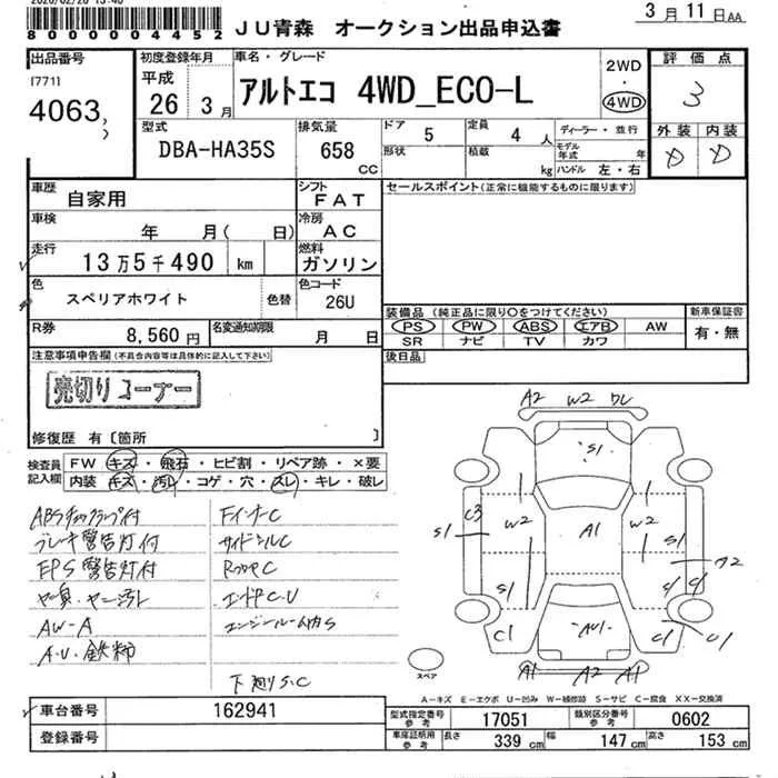 Suzuki ALTO ECO с аукциона Японии JU Aomori лот № 4063