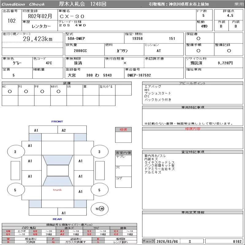 Mazda CX-30 с аукциона Японии ORIX Atsugi Nyusatsu лот № 102