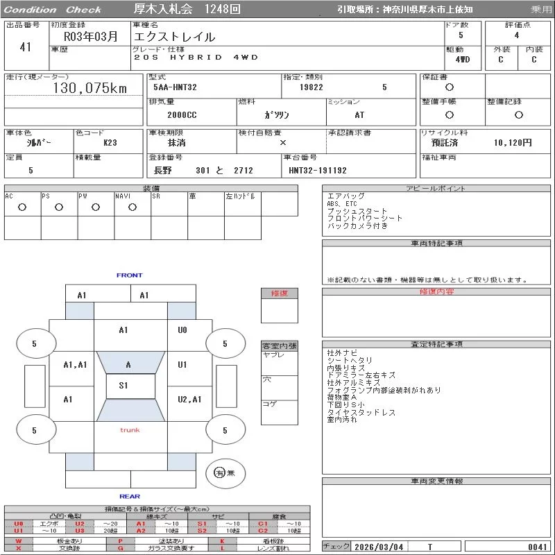 Nissan X-TRAIL с аукциона Японии ORIX Atsugi Nyusatsu лот № 41