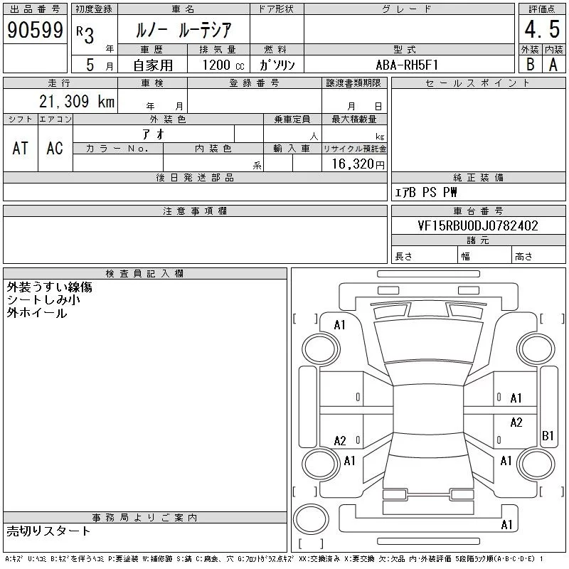 Renault LUTECIA с аукциона Японии CAA Chubu лот № 90599