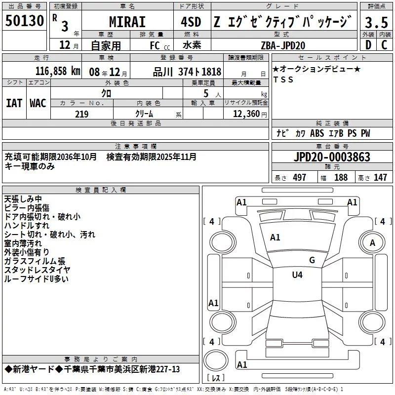 Toyota MIRAI с аукциона Японии TAA Kanto лот № 50130