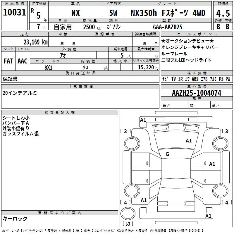 Lexus NX с аукциона Японии TAA Chubu лот № 10031