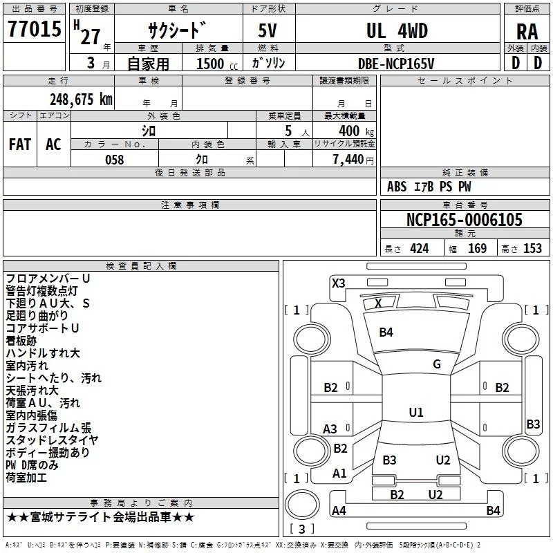 Toyota SUCCEED с аукциона Японии TAA Tohoku лот № 77015