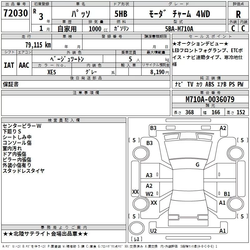 Toyota PASSO с аукциона Японии TAA Chubu лот № 72030