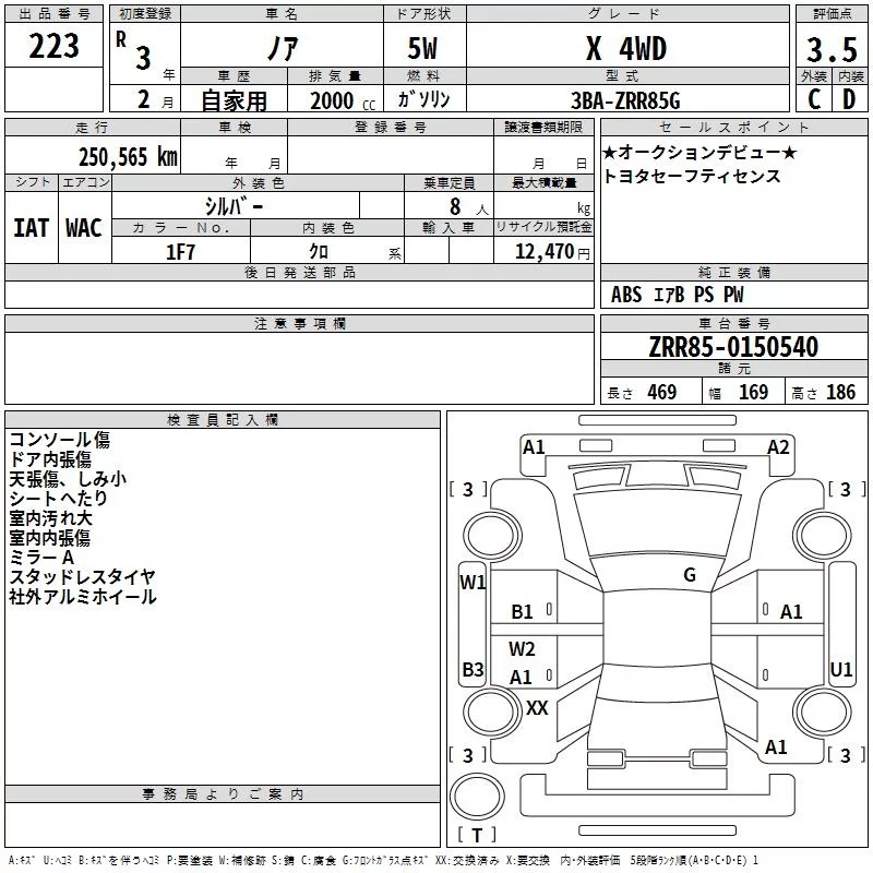 Toyota NOAH с аукциона Японии TAA Chubu лот № 223