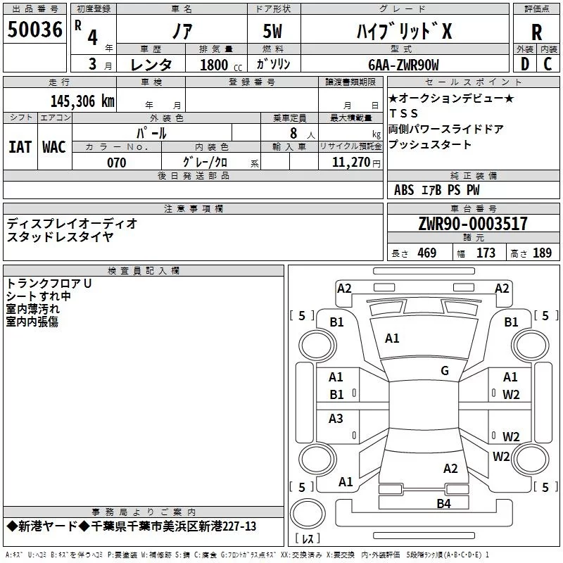 Toyota NOAH с аукциона Японии TAA Kanto лот № 50036