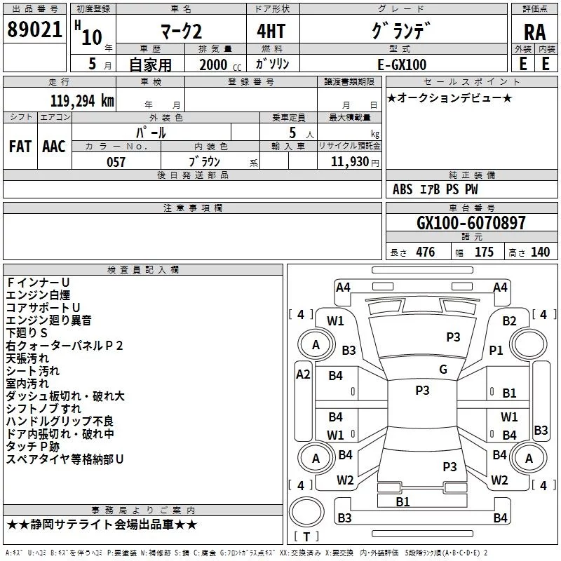Toyota MARK II с аукциона Японии TAA Chubu лот № 89021