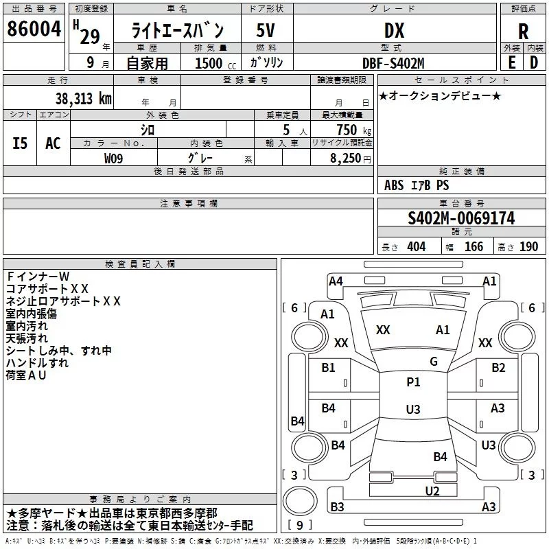 Toyota LITE ACE VAN с аукциона Японии TAA Kanto лот № 86004