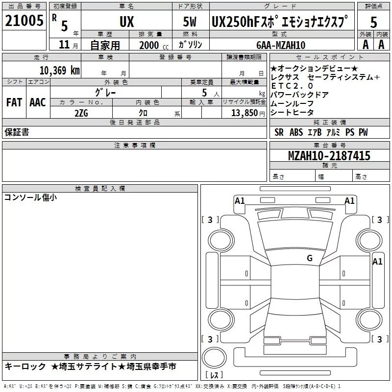 Lexus UX с аукциона Японии TAA Kanto лот № 21005