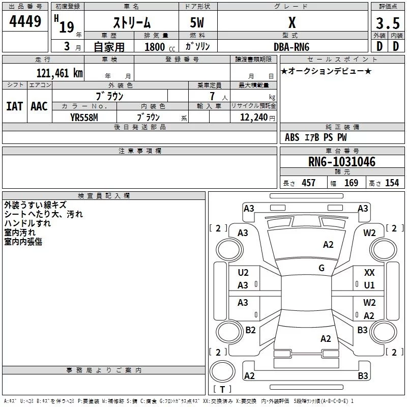 Honda STREAM с аукциона Японии TAA Chubu лот № 4449