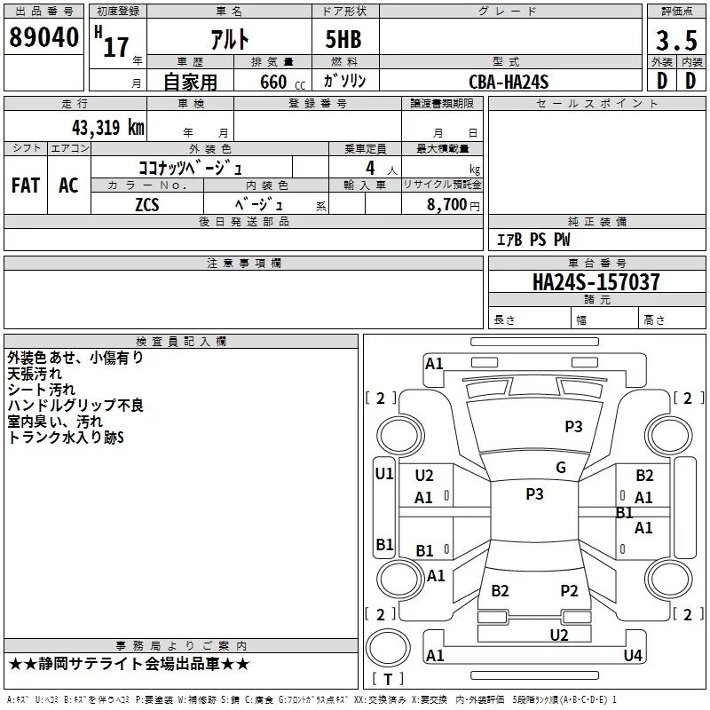 Suzuki ALTO с аукциона Японии TAA Chubu лот № 89040