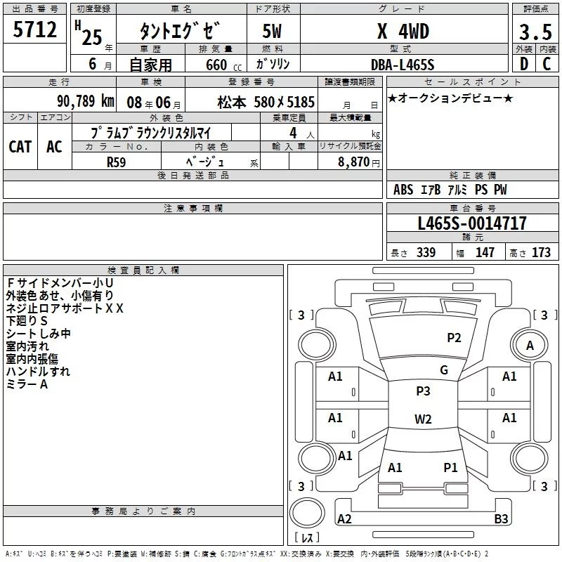 Daihatsu TANTO EXE с аукциона Японии TAA Chubu лот № 5712
