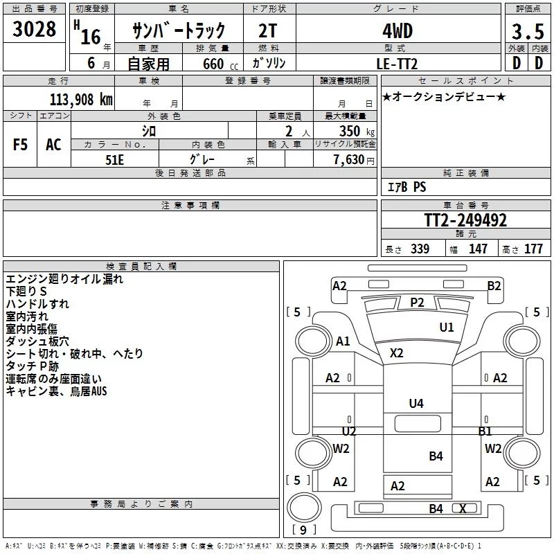 Subaru SAMBAR с аукциона Японии TAA Kanto лот № 3028