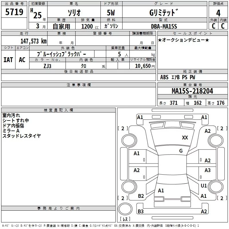 Suzuki SOLIO с аукциона Японии TAA Chubu лот № 5719